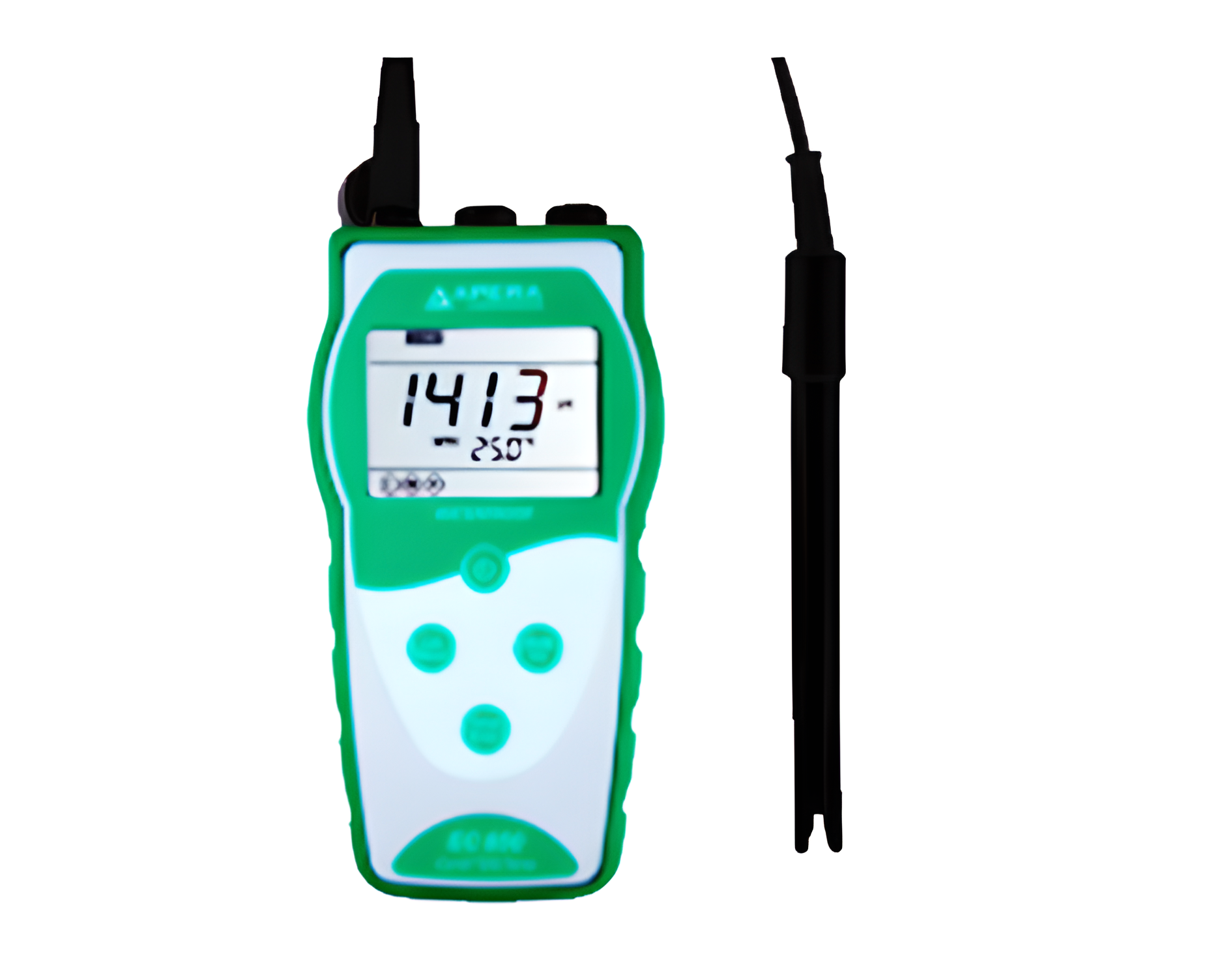 L’option la plus abordable pour un conductimètre portable fiable est le kit de mesure de conductivité / TDS portable Apera Instruments EC850. Ce multimètre examine simultanément et avec précision la conductivité, le TDS et la température en utilisant le capteur/électrode/testeur de conductivité BPB (Brush-Resistant Platinum Black) d’Apera (Précision : 1,0 % FS, plage : 0 à 200 mS, 0 à 50°C (32 à 122°F) Compensation automatique ou manuelle de la température).